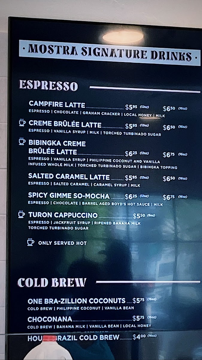 Welcome to Mostra Coffee, a delightful gem located in the heart of San Diego at 2001 Fourth Ave. This café stands out not only for its inviting ambiance but also for an exceptional menu tailored for coffee lovers and those seeking delightful non-caffeinated options.