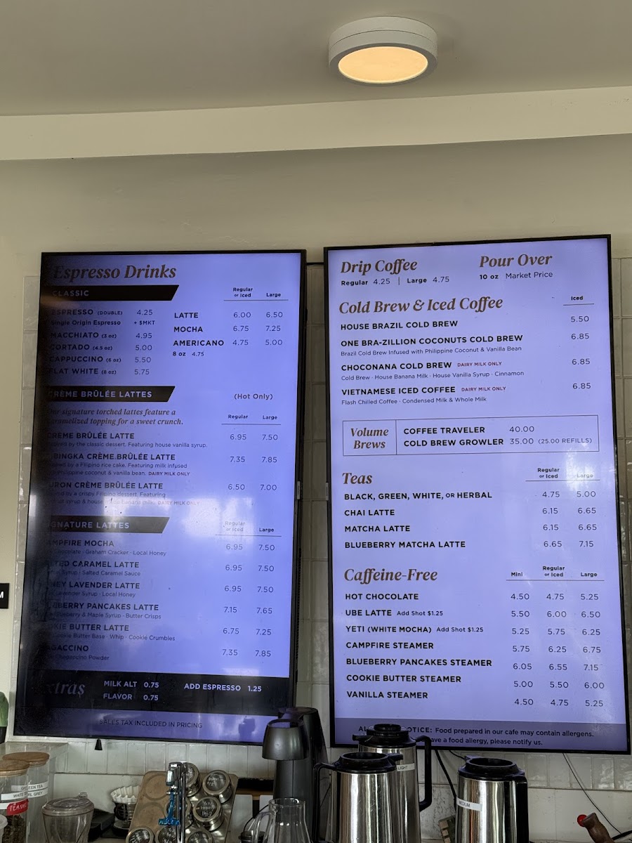 The baristas here take immense pride in crafting each beverage, ensuring that the quality of coffee shines through. Highlights include the signature latte, the creme brulee latte, and the indulgent choconana iced latte, all praised for their balanced flavors that avoid excessive sweetness. For those who prefer a caffeine-free experience, the ube drink offers a unique and addictive taste that has garnered a loyal following.